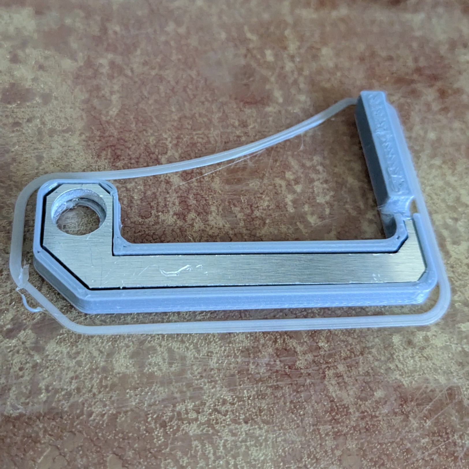 This is a hollowed out, 3D printed bracket that has a 1/8″ (0.125 inch) metal insert that spans the length of the bracket. This metal insert provides the rigidity of my all metal bracket but the feel and the colors of my ABS bracket. The metal insert is fully enclosed within the ABS and cannot be removed. There is a really cool window feature that allows you to peek inside the bracket revealing the metal insert. The insert is made of aluminum.